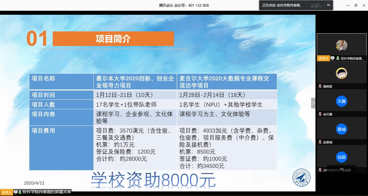 于腾讯会议系统成功举办2020墨尔本大学、麦吉尔大学寒假项目分享会。本次分享会由此次寒假项目带队老师、枫林网