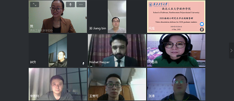 的研究生经历,让所有留学生们受益匪浅,学院也对他们进行了一次简短的网上采访。采访中,留学生JAHFAR KHAN SAIDBAZ谈到,这次答辩对他来说是一次新的经历,虽然网络出现了点儿小问题,但是好在一切也都很顺利。他永远不会忘记西工大,这里是他的第二个家。他很遗憾当前中国发生了新冠病毒肺炎这场灾难,希望也坚信新冠病毒肺炎将从中国,最终从世界上消失;留学生NISHAT NAYYAR谈到,这次网络答辩会成为他生活中独一无二的经历,虽然很艰难,但感到很快乐,很放松,很幸福。他感谢学校老师的的辛勤付出,庆幸自己可以成为西工大的一份子,在这里他结交了很多中国朋友,也接触了很多真正乐于助人、最受尊敬的老师,让他更有信心、更有动力。他怀念在中国生活学习的这段日子,也坚信在抗击新冠病毒的斗争中,中国一定会赢!