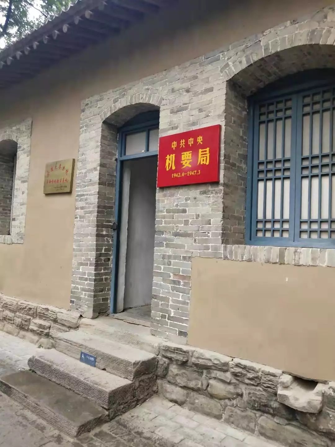 一行人进入园内,沿着石路一步步寻过去,路过幸福渠,依次参观了中央军委枣园作战室旧址,中共中央行政办公室旧址,中共中央机要局旧址,中共中央管理局旧址以及中共中央书记处礼堂旧址。