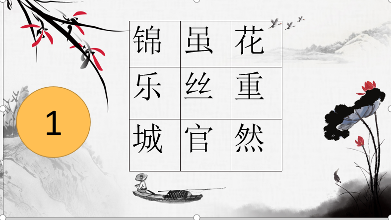 在决赛之前,通过初赛及复赛我们的八强名额已经诞生,所以此次决赛首先进行的便是“八进四”——四强争夺战。这一赛事包括两个环节,第一是“散字组诗”环节,例如: