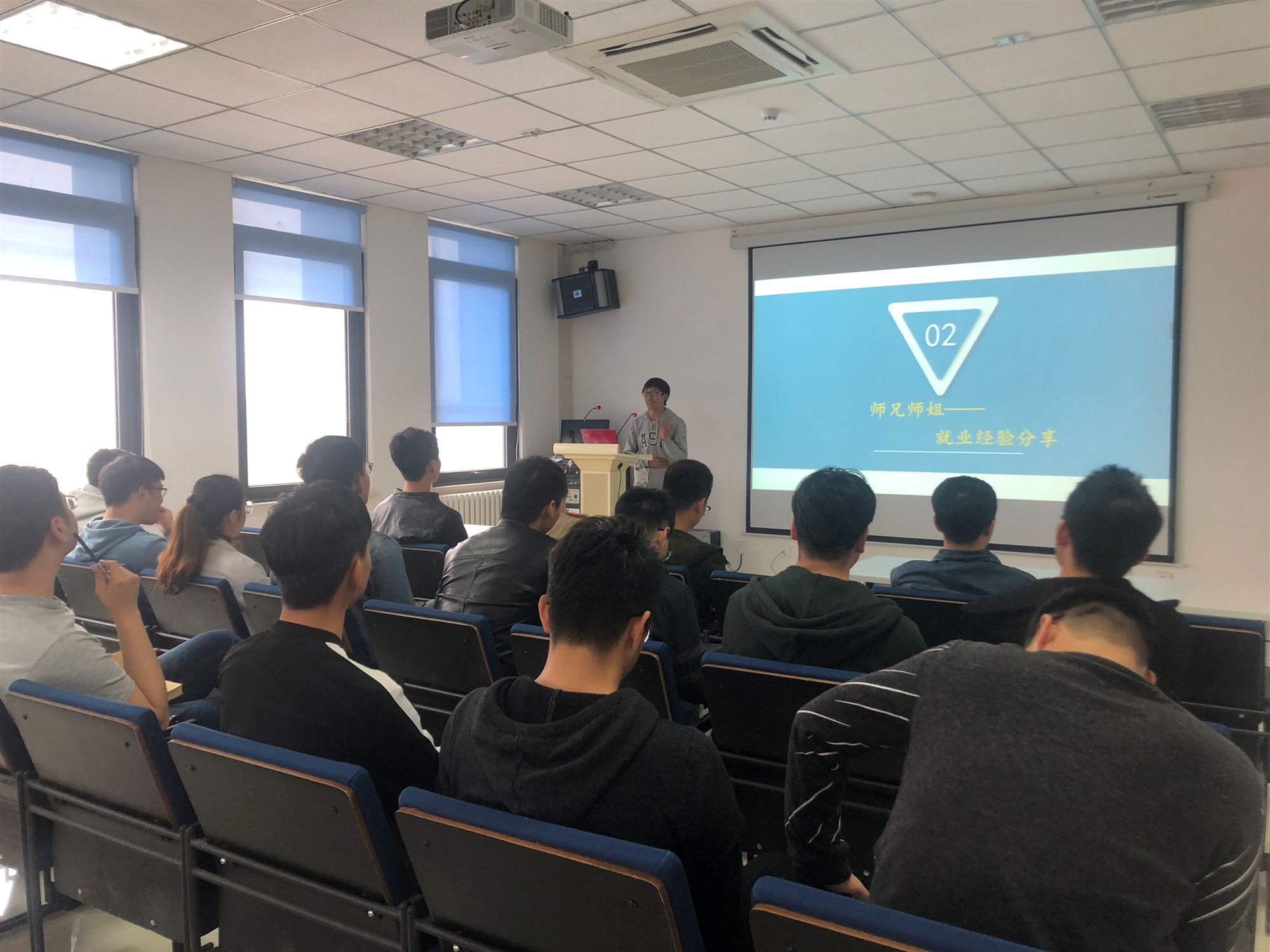 接下来是2019届毕业研究生的经验分享环节。学院邀请到了今年签约腾讯、阿里、华为等知名公司的毕业生前来分享就业的经验。在经验分享过程中,签约北京还是科技有限公司的2019届毕业研究生肖金霸为大家分享了自己在就业过程中的经验,希望大家都能打好坚实的技术基础,为顺利签约做好铺垫;签约浙商银行的卜迪说到:“研究生在学习科研中要善于发现问题,同时还要积极解决问题。只有在发现问题并努力解决问题后,自己的能力才会得到更好地提高。”签约阿里巴巴的张仁宇曾在美团、腾讯等知名公司实习,他为大家分享了自己的实习经验和投递简历的技巧,在座的同学们纷纷表示很为受用;签约华为的王文杰询问到师弟师妹们目前的实习情况,并为大家分享了实习与签约之间的联系,希望大家都能把握好实习的机会;同样签约华为的朱皓谈到研究生要尽早对自己的未来进行规划,同时要树立好自己的信念与信心,并努力朝自己的规划目标去努力。会后,2017级、2018级研究生与师兄们积极沟通交流,关于实习的疑惑、就业方向的选择、就业单位的选择方面都进行了深入的交流。