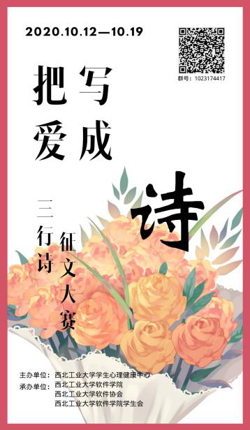学生会共同承办的“把爱写成诗”三行诗征文大赛于2020年10月顺利举办。