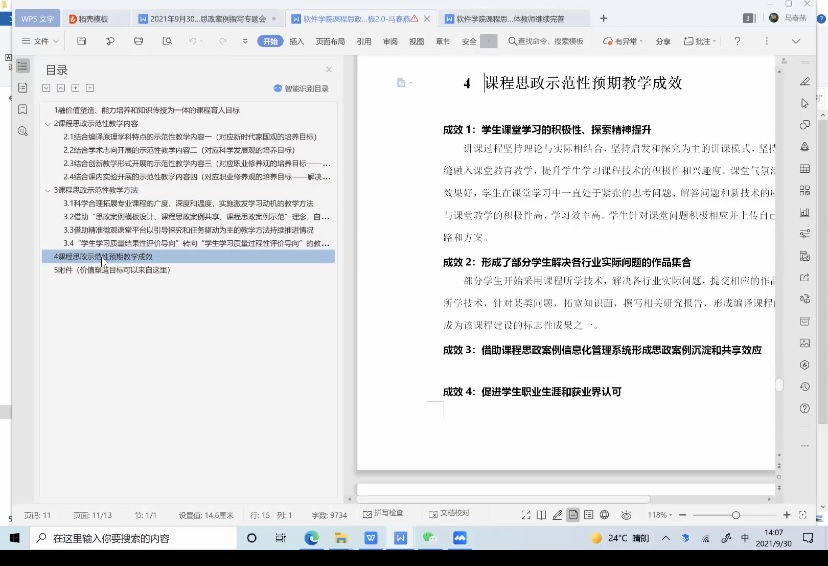 “门门课程有思政”的建设方案,并统一制定了软件工程专业的课程思政案例模板。马院长着重强调以价值塑造、能力培养和知识传授为一体的育人目标,并根据不同课程的特点进行对应的目标培养设计,实现对新时代大学生新时代家国观、社会主义核心价值观、科学发展观、优良传统文化观、现代法治观和职业修养观的培养目标。在教学方法上,马院长通过深刻分析科学合理拓展专业课程的广度、深度和温度,进一步实现对学生学习动机的有效激发,并借助信息化平台不断引导探究和任务驱动为主的教学方法的推进,最终实现教学方法从“学生学习质量结果性评价导向”到“学生学习质量过程性评价导向”的转变。