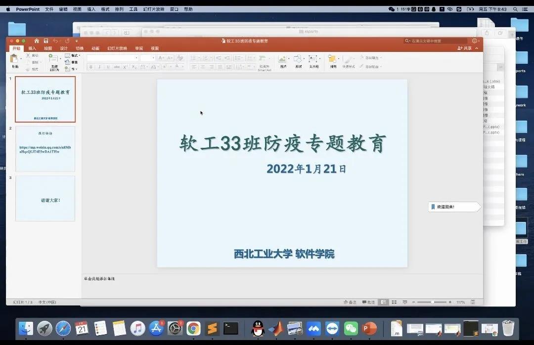 各年级班主任的带领下,学院全体学生最终顺利完成了此次疫情防控专题教育活动。同学们在新冠肺炎的传播、返乡途中及居家的注意事项等方面有了清晰的认识,通过此次防疫教育班会的开展,同学们更能科学合理地进行疫情防控,保护自己及家人的健康。最后,祝同学们顺利返乡,健康过年,春暖花开之时我们再见!