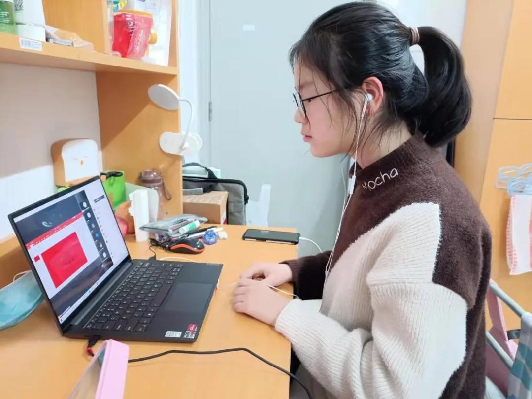 (在宿舍封闭期间认真开班会的同学们)