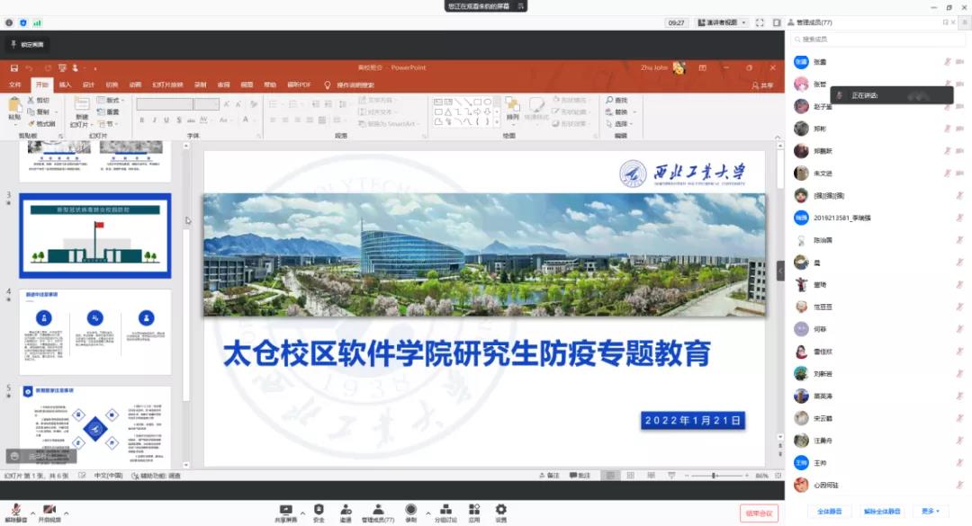 研究生同样地也接受了防疫宣传教育,强化了学生对新冠肺炎疫情的思想认识,提醒同学们在返乡过程中要注意的问题,所有同学均按时参与会议,认真学习了此次防疫专题教育,对今后如何更合理地进行防疫和保护自己及家人健康有了明确认识。
