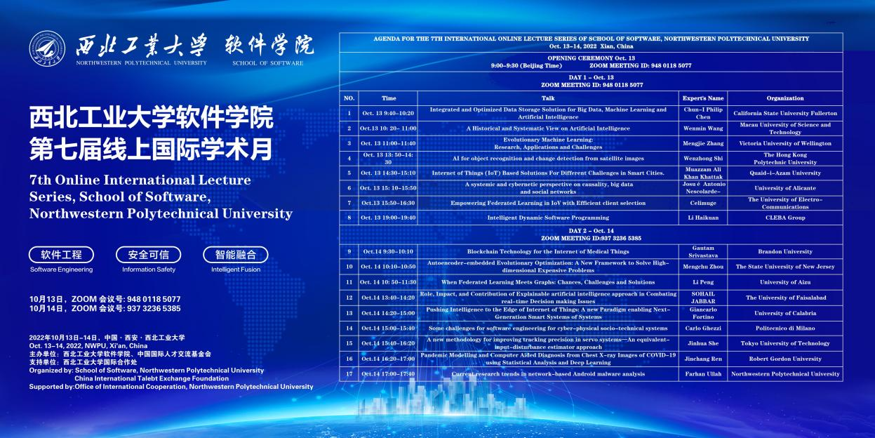 第七届(线上)国际学术月会议”(由于疫情原因暂不设置线下分会场),将于2022年10月13日至10月14日举办,本次会议主题为:软件工程&安全可信&智能融合。