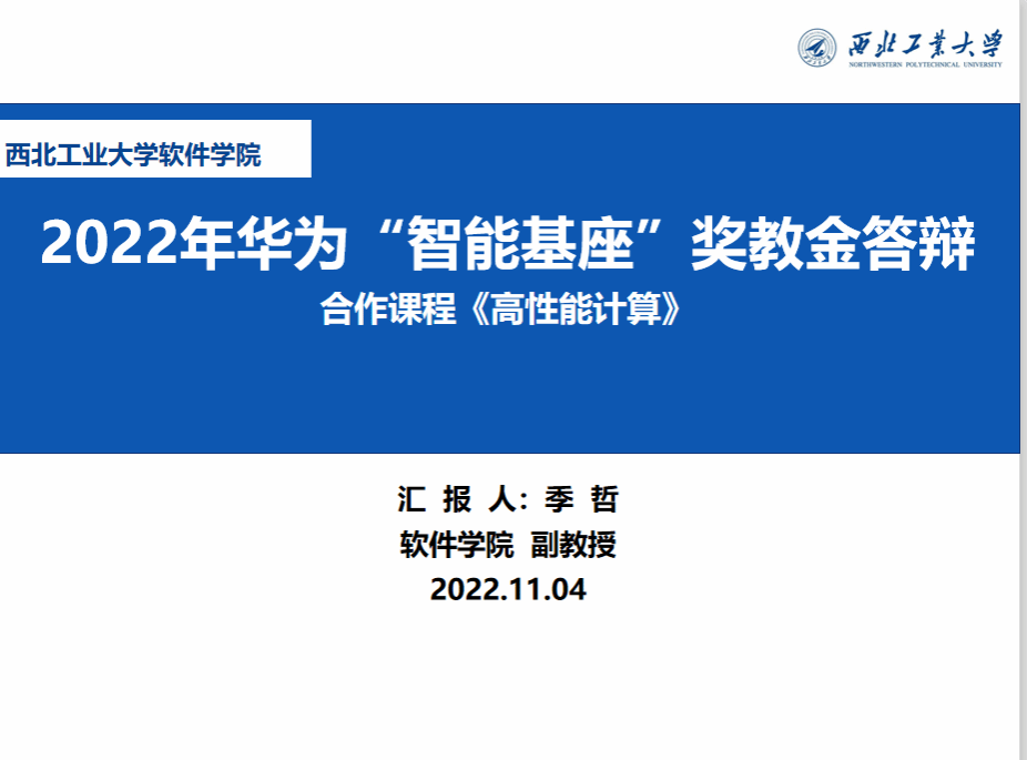 和陕西省人工智能生态创新中心成立“工业软件&智能数据联合实验室”。指导学生参加鲲鹏创新应用大赛,获得HPC赛道陕西赛区唯一金奖,全国赛铜奖。