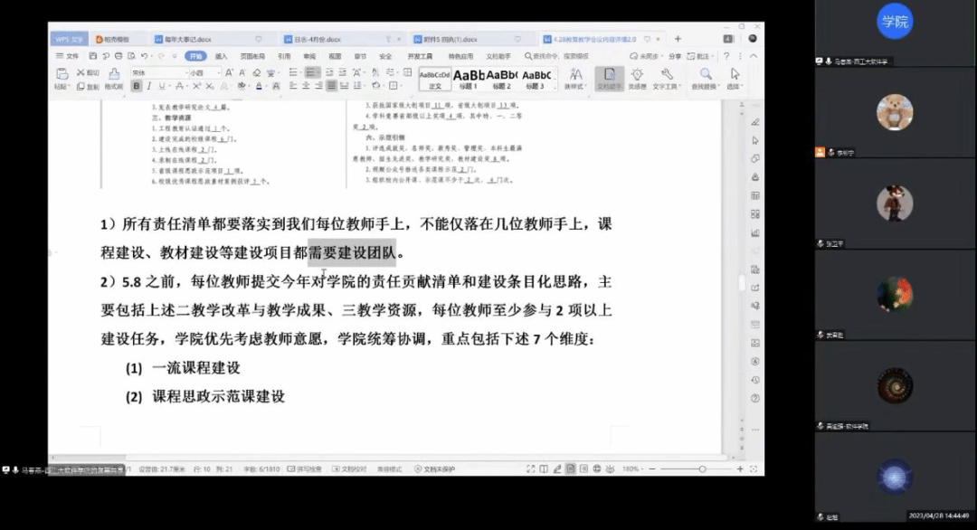 会议第一项,郑江滨首先做了工作指导,学院将采取一系列措施激励教师积极参与课程、教材等标志性成果建设,旨在核心关键指标落实到人,政策支持,配套经费资助,成果培育实现。学院对项目建设进行统筹布局,定期评估并制定相应措施,确保各部门的工作有序推进,并且能够产生协同效应。学院还将加强对KPI核心指标贡献的考核,制定绩效奖励,以激发学院争创一流的动力,积极推进一流本科人才培养行动计划。