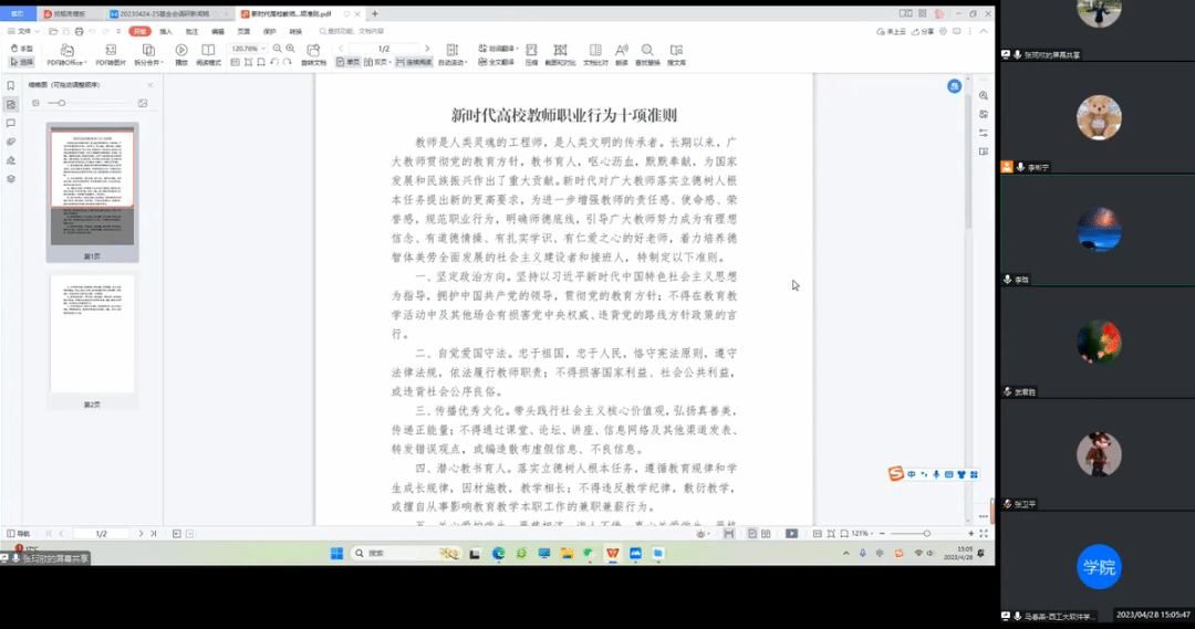 会议最后,李晗带领全体教师学习《新时代高校教师职业行为十项准则》《枫林网
