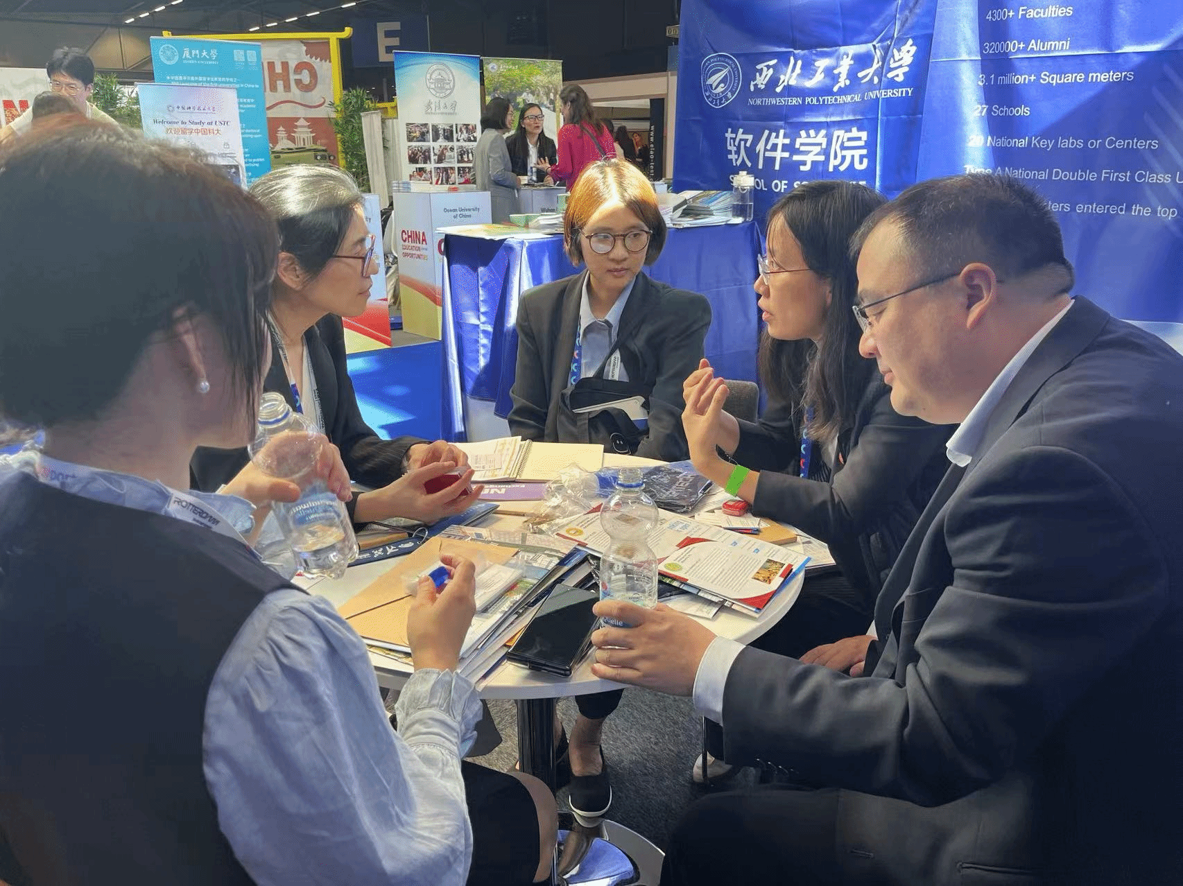 院长郑江滨与法国计算机及新技术学院(Epitech)国际合作负责人Oriane在展会现场就双方交换生项目的落实工作进行了深入交流,并向对方介绍了西工大太仓智汇港的地理优势、良好的硬件条件和浓厚的研发氛围,希望留学生有机会入驻太仓。接下来,学院将尽快着手双方合作协议签署,推动反向留学生派送工作。