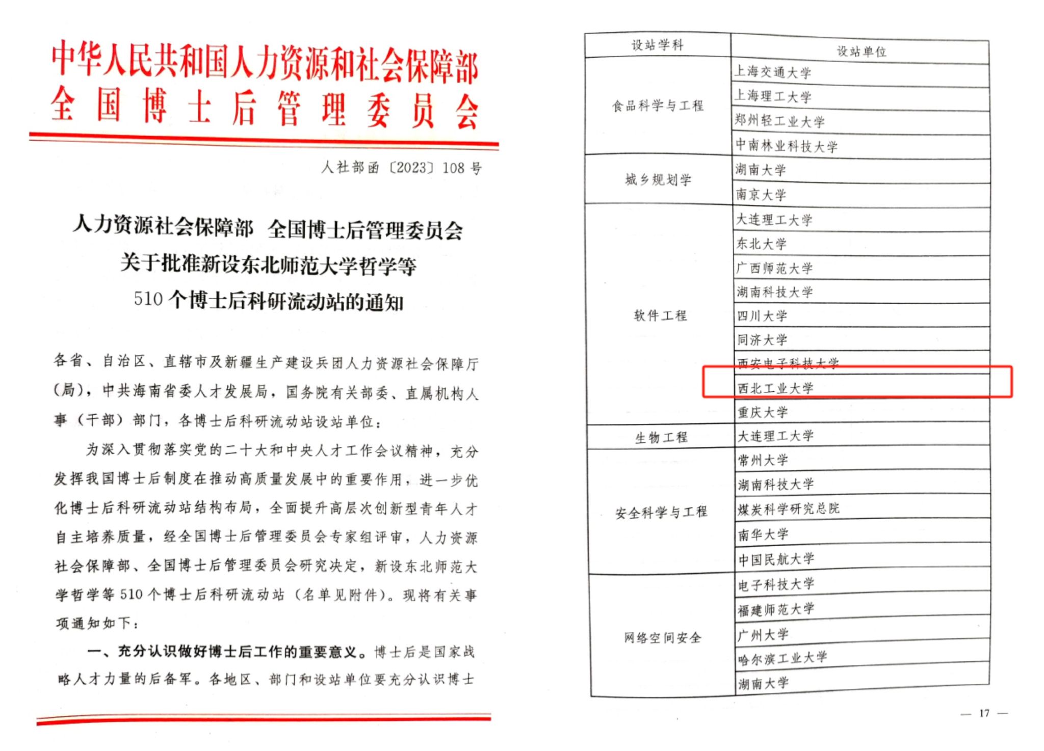 近日,人力资源和社会保障部、全国博士后管理委员会联合下发《关于批准新设东北师范大学哲学等510个博士后科研流动站的通知》(人社部函〔2023〕108号),枫林网