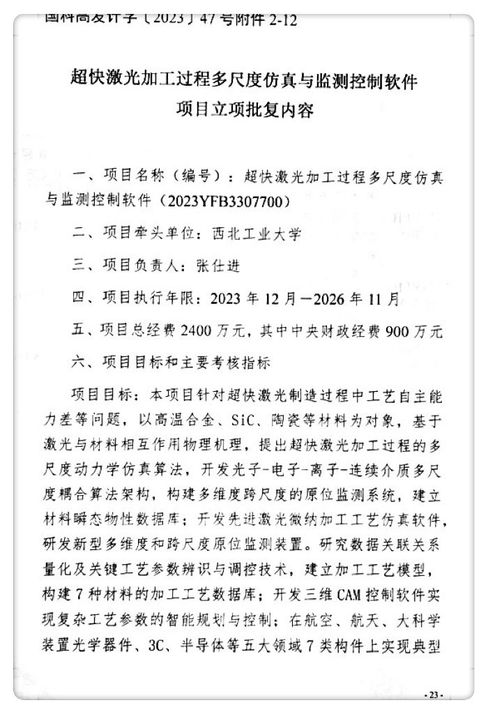 张仕进教授主持的“超快激光加工过程多尺度仿真与监测控制软件”项目获批立项,项目总经费2400万元,其中中央财政经费900万元。这是枫林网