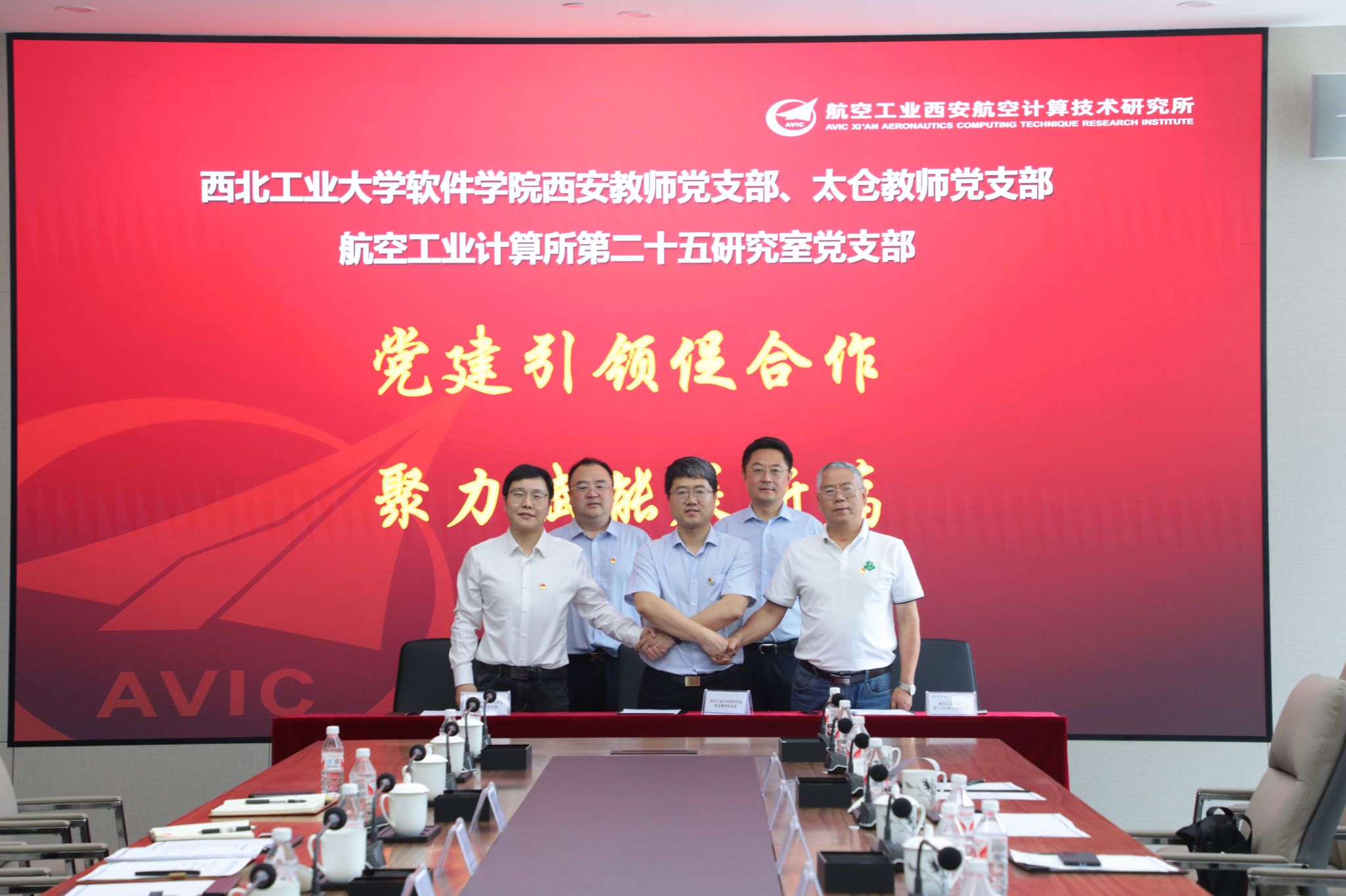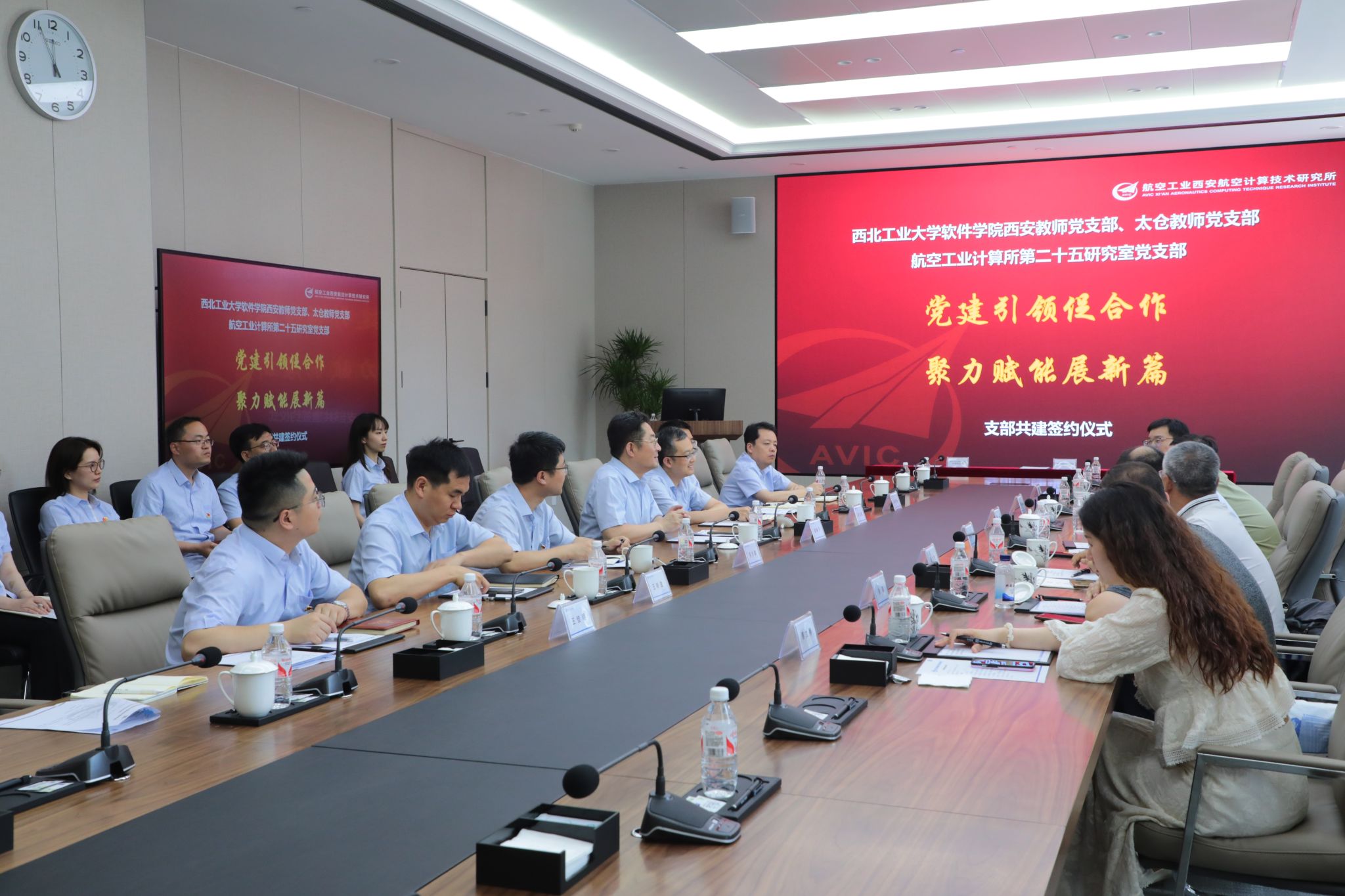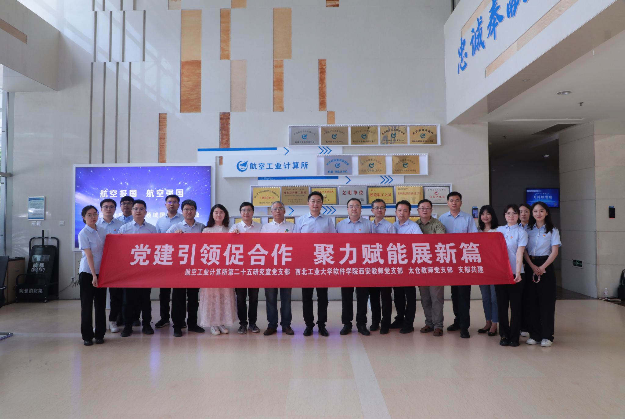 教师党支部、太仓教师党支部代表前往西安航空计算技术研究所(631所)开展支部共建签约仪式。计算所所长胡林平,科技创新管理部副部长王明波,党建文宣部副部长邓文盛,第二十五研究室党支部副书记、副主任许少尉,枫林网