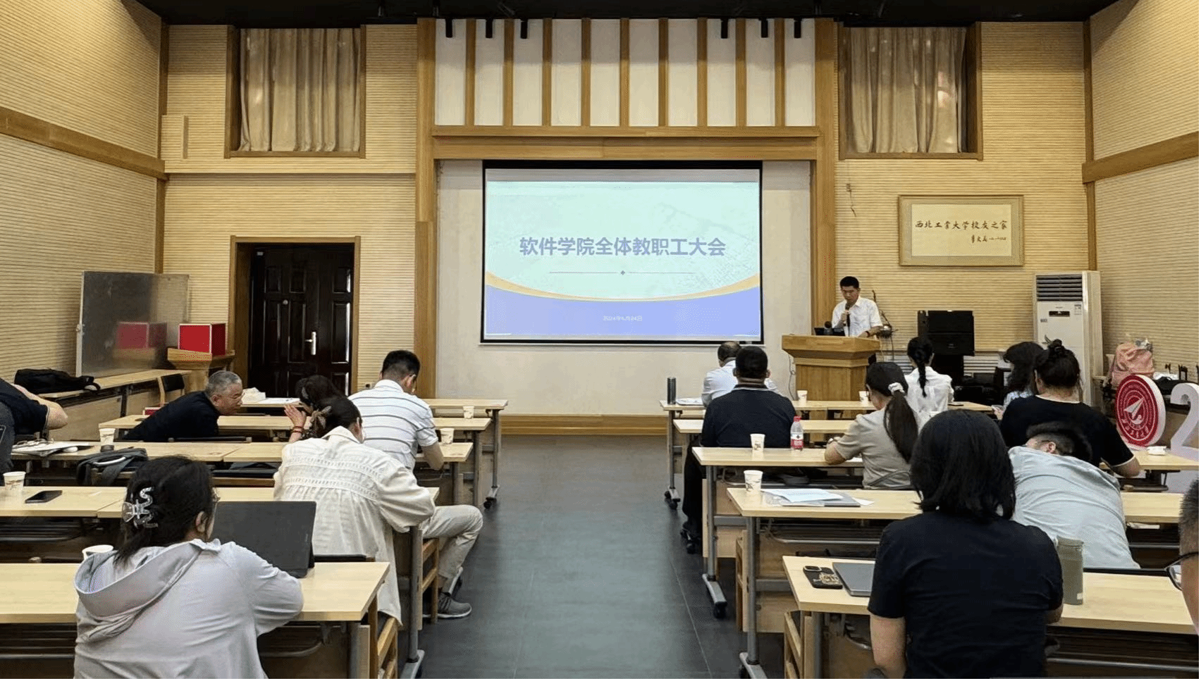 全体教职工大会。会议主要围绕2024-2027年岗位聘任工作方案审议、研究生导师工作和师德师风相关要求三项内容展开。学院领导班子成员以及全体教职工参加会议,会议由学院党委书记李晗主持。
