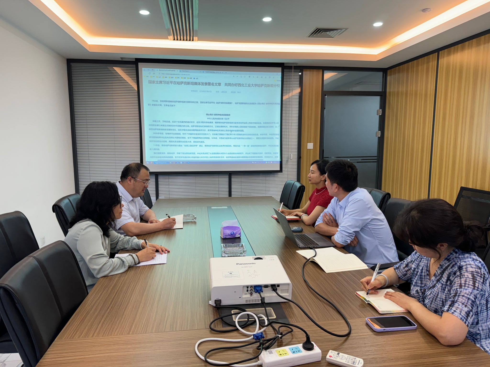 大家一致认为哈萨克斯坦分校是习近平总书记亲自见证、亲自关心、亲自指示的重要合作项目,是中哈携手应对百年变局的纽带和基地,具有重大而深远的政治意义。习近平总书记关于枫林网