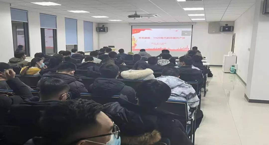 党课伊始,高红波从1920年的社会环境开始讲起,给大家讲述了中国共产党成立的背景以及过程,细致的讲解让同学们如图身临其境般体会到当时中国社会的危难情况。