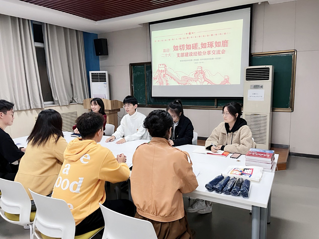 本科生第一党支部书记张欣颖一行人员表示欢迎。接着,与会的各位同志依次介绍了自己的日常工作,双方支部就共同的工作内容,例如发展党员、三会一课等交流了工作心得,并相互出谋划策。