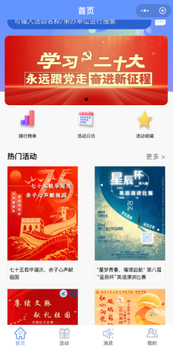 活动期间,学院精心策划并采用了多种多样的宣传方式,力求让每一位同学都能知晓这次意义非凡的活动。其中包括色彩鲜艳、设计精美的海报,它们张贴在校园的各个公告栏上,像是热情的使者,向过往的师生传递着活动的信息;醒目的横幅横跨在校园的主干道上空,“七十五载华诞庆,赤子心声献祖国”,铿锵的口号在阳光下熠熠生辉,吸引着大家的目光;还有一张张精心制作的宣传单,被志愿者们分发到同学们的手中,宣传单上详细地介绍了活动的内容和参与方式;网络平台上的推文也在不断地更新着,用生动的文字和精彩的图片展现活动的魅力;我们还打造了专门的视频号,里面发布的视频以直观、有趣的形式向大家展示活动的精彩瞬间;更值得一提的是我们可爱的团团小文体,它们在校园里活跃地穿梭,成为了一道独特的风景线,让同学们眼前一亮。就这样,无论你是漫步在绿树成荫的校道上,还是在教学楼、图书馆、食堂这些地方穿梭,都能强烈地感受到这次活动浓郁的氛围,仿佛整个校园都沉浸在一片欢乐又充满激情的海洋之中。