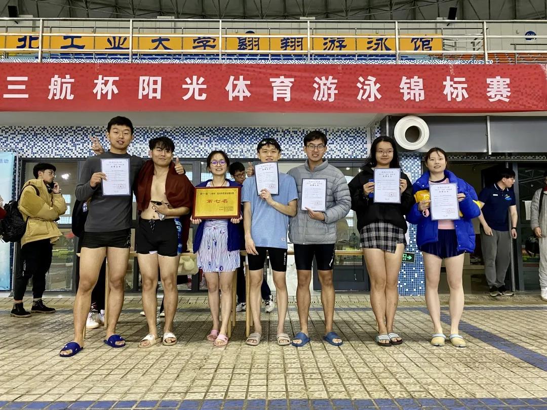在团体接力赛中,由队长周昱琪带队,队员由2020级本科生黄柏淇、2021级郭佳林、2019级辛豪杰、2018级陈家润、2020级郭嘉诚、2020级游俊、2020级方世琦、2019级李晓雯、2019级田诚东,2021级研究生高英豪组成。团体赛不仅考验每位队员的游泳技术,更加考验团队协作能力。比赛开始时,队员们都拼尽全力向终点游去,虽然稍稍落后于对方,但在每个人的全力以赴下,最终取得第七名的成绩。