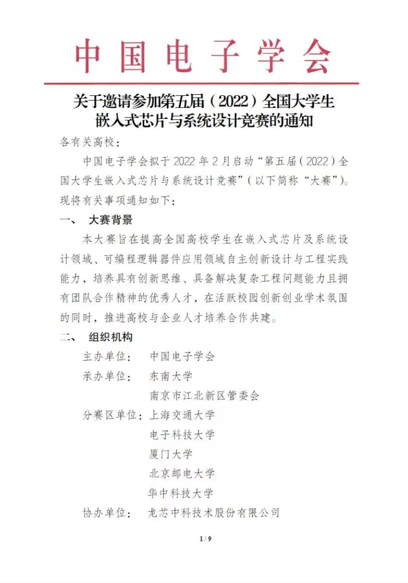 关于邀请参加第五届(2022)全国大学生嵌入式芯片与系统设计竞赛的通知
