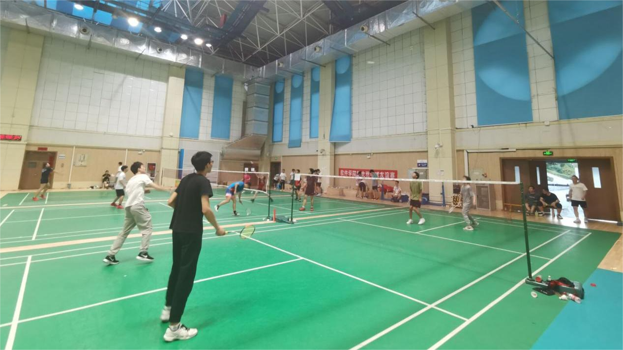 室内羽毛球场内,不时响起一阵阵喝彩声,师生同场竞技,合作亦是默契。两个项目,比赛高潮迭起,精彩纷呈。双方打得你来我往,为软件生们奉献了一场又一场的精彩比赛。
