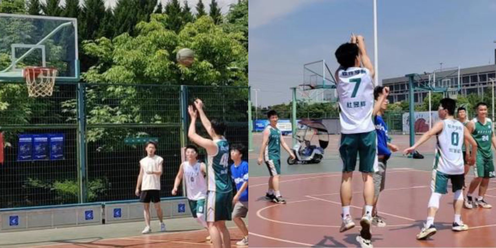 骄阳似火,挡不住热烈的师生情谊。随着开场哨的吹响,双方队员灵活跑位、机敏抢球、漂亮回防、精彩投篮,你来我往,比分交替上升,赛场上也传来阵阵加油声和助威声,参赛师生凭借队员间完美的配合和娴熟的技巧,为大家呈现了一场精彩绝伦的篮球赛。全场比赛分为上下半场,共30分钟。最终毕业生队以47:45的比分获得胜利,每一位参赛选手都秉持友谊第一、比赛第二的体育精神,赛出了风度和风采。