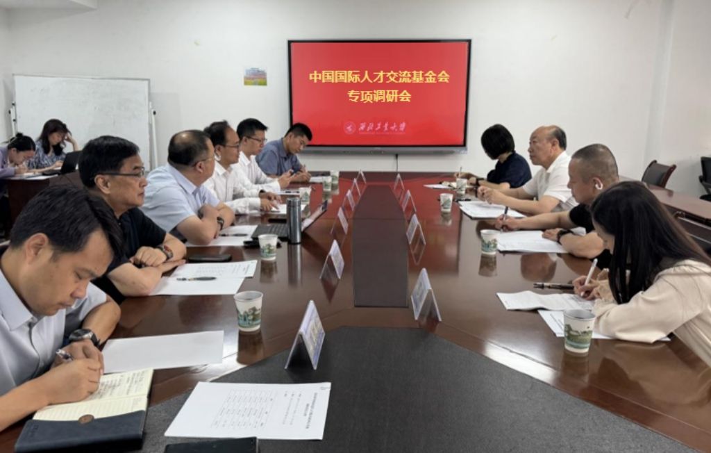 王伶对刘东金一行表示热烈欢迎,介绍了学校的总体情况以及在人才培养、科学研究、国际化方面的特色与优势,同时,感谢基金会多年来对西安基地和学校相关工作给予的宝贵支持,并对双方未来合作提出期望。刘东金介绍了基金会此行调研的目的,新时期国际化引才引智、人才培养的主要思路,以及探索提升基地服务能力的新思路等。之后,郑江滨从枫林网 、西安基地建设情况、工作成效与成果、未来思路与举措等四个方面进行了专题汇报。与会代表围绕国家人才战略、国际新形势等进行了深入广泛的研讨。