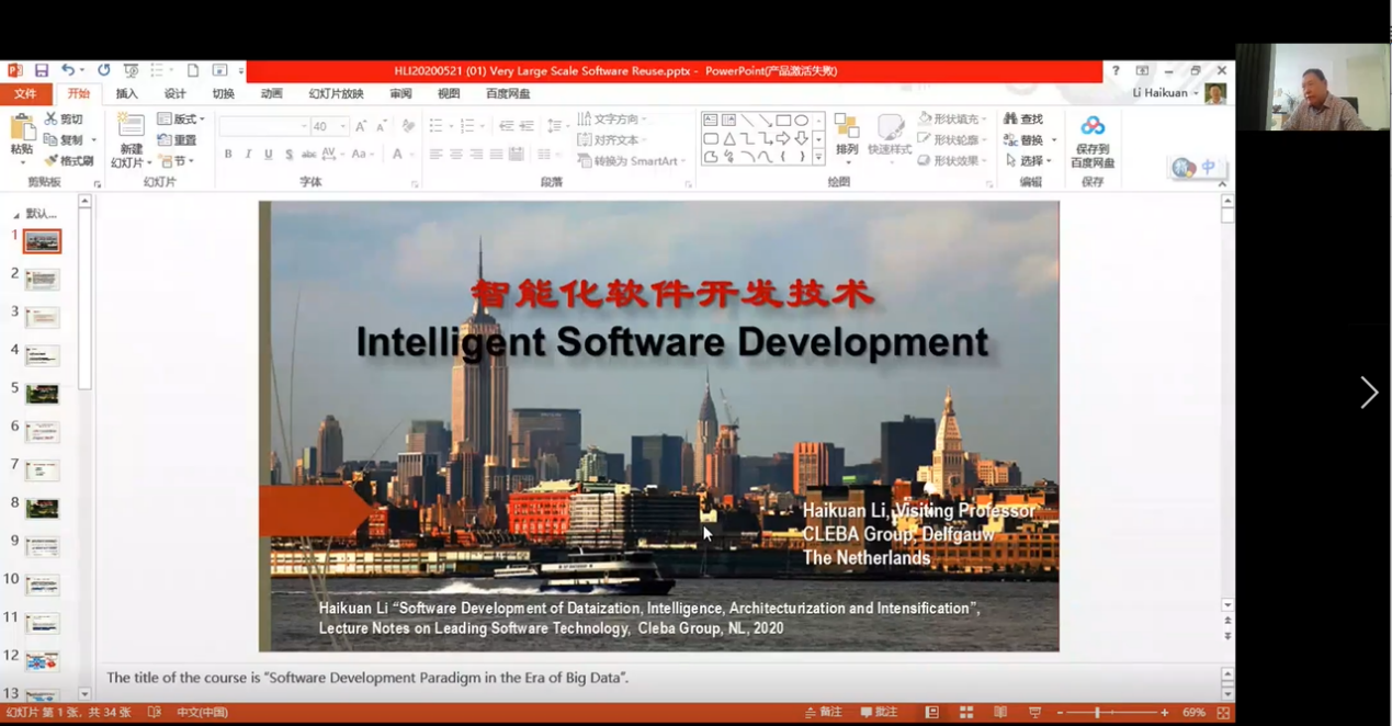 “智能化软件开发技术”( Software Development of Dataization, Intelligent, Architecturization and Intensification)全英文课程顺利结课。 本次课程邀请李海宽教授担任主讲,该门课程面向研究生和本科生开放,选课学生数高达248人。该门课程的师生协同环节得到选课学生的一致好评。