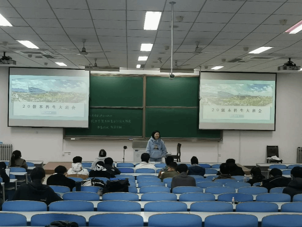 为积极动员20级本科生提前为就业、升学做好相应准备工作,提前为学生树立就业思维,引导学生提前规划大学生涯后半程的道路。20级本科于1125日在教西D201召开本学期年级大班会。应学校疫情防控要求,此次大班会采用线上线下同步的方式。本次大班会要求本年级学业成绩后15%的学生线下参加并同时邀请学生家长在线旁听。尽可能实现家校联合同步指导学生的情况。也让家长能够及时、真实的了解在校学生的学业状况,达到双重监督和敦促的作用。