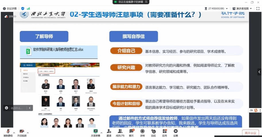 在线举办“科研育人—总师型人才培养”主题宣讲会,2023级70余名本科生参加会议,会议由学院本科教学秘书郭艳静主持。