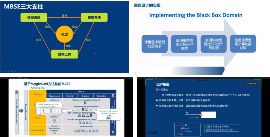 安托集团讲师占国熊带来第一讲,从系统工程的概念出发,介绍复杂装备在体系、系统两个层次的基本分析方法和架构。安托集团讲师马金贵和耿涛讲解了系统工程的架构设计和仿真,主要包括:SysML 语言基础知识、建模标准规范、系统设计基本过程、MagicGrid 方法论、系统仿真Modelica 建模语言等,结合实际建模案例和建模工具,帮助学员快速熟悉仿真建模。