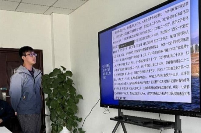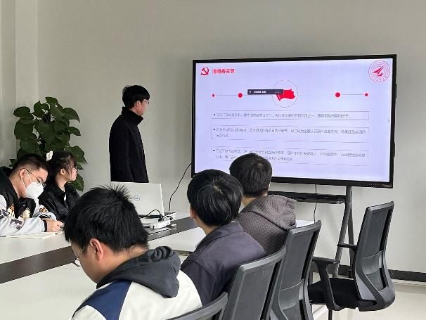 丹心昭日月,风范励后人。支部赵幸源同志朗诵节选自习近平总书记的《论中国共产党历史》,主要讲述了伟大的斗争精神以及当今伟大的抗疫精神,皆是中国精神的重要诠释。随后列举在漫漫历史长河中无数的青年英杰在他们的人生中无数的奉献与出彩。一个有希望的民族不能没有英雄,一个有前途的国家不能没有先锋,当代青年的我们应在新时代的舞台上大展宏图,无愧先辈嘱托,实现自己的人上理想!