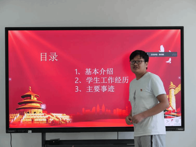 随后,评选学生党建先进个人,白梦娇和毛夏煜两个人分别从党建工作经历、支部的日常工作等方面展开答辩,展现了党员干部担当奋进的精神风貌。