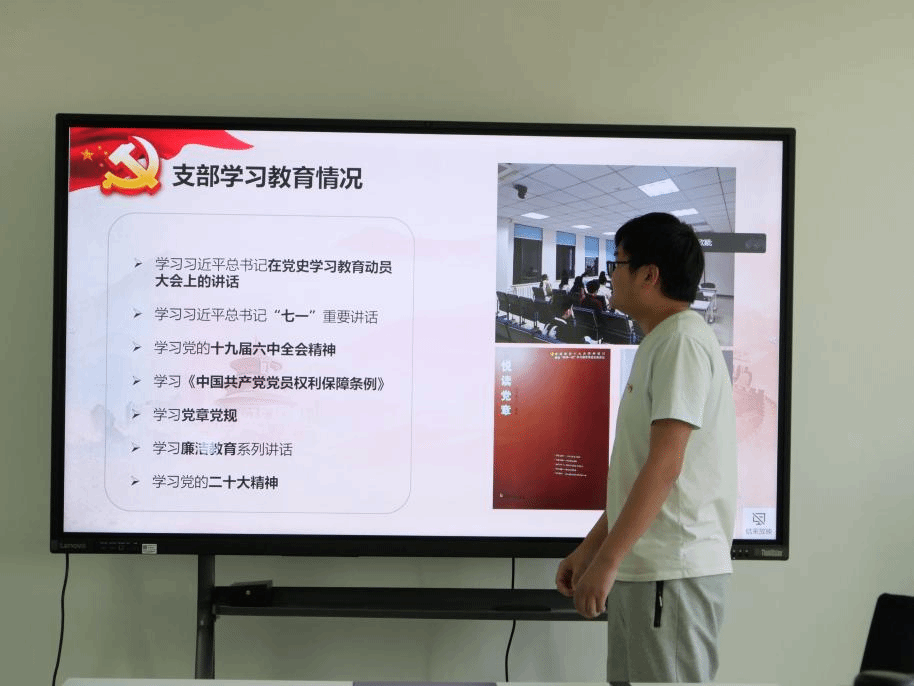 首先,评选先进学生党支部,研究生第三党支部和研究生第五党支部通过PPT答辩展示了研究生党支部的风采。答辩人员分别从支部情况、支部建设、主题教育活动、党员教育、科研创新、志愿实践、支部特色以及防疫抗疫等方面作了介绍,展现了党支部一年以来取得的丰硕成果。