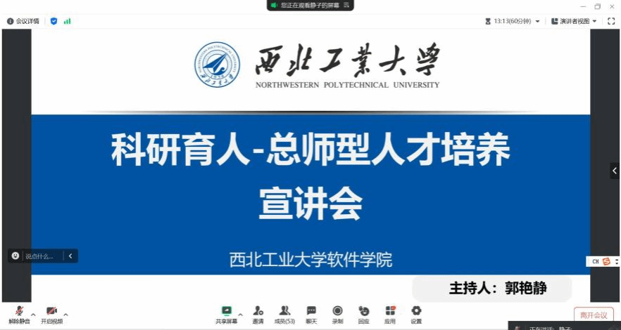 在线举办“科研育人—总师型人才培养”主题宣讲会,2023级70余名本科生参加会议,会议由学院本科教学秘书郭艳静主持。