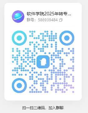 2025年转专业学生群586939484”,申请进群输入“原学院-学号-姓名”进行身份验证,入群后请修改备注名“原学院-学号-姓名”。面试名单及具体安排将发布在该群里(很重要)。
